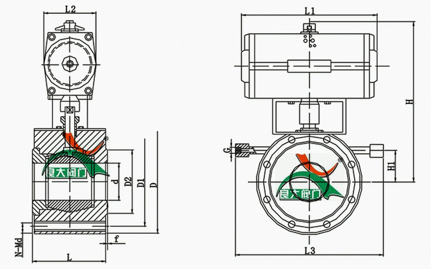 保溫對(duì)夾式氣動(dòng)球閥外形結(jié)構(gòu)圖: