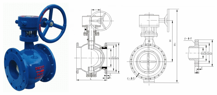雙偏心半球閥外形結(jié)構(gòu)圖: