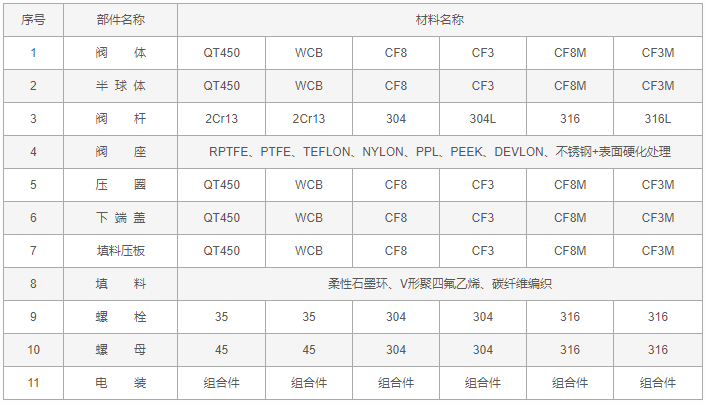 電動(dòng)偏心半球閥零件材料: