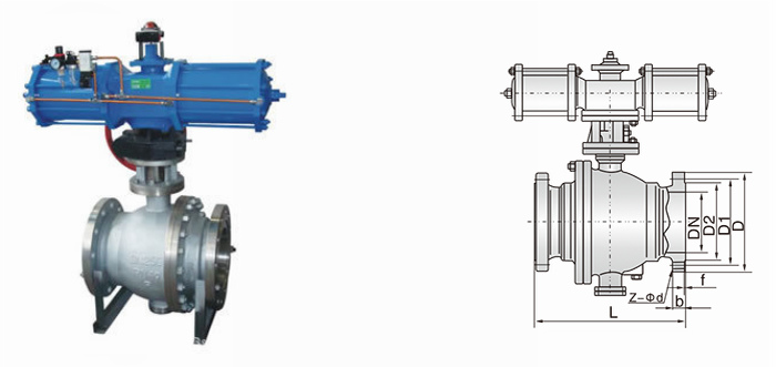 氣動(dòng)固定式球閥外形結(jié)構(gòu)圖: