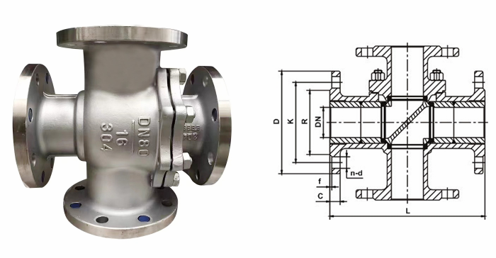 不銹鋼四通球閥外形結(jié)構(gòu)圖: