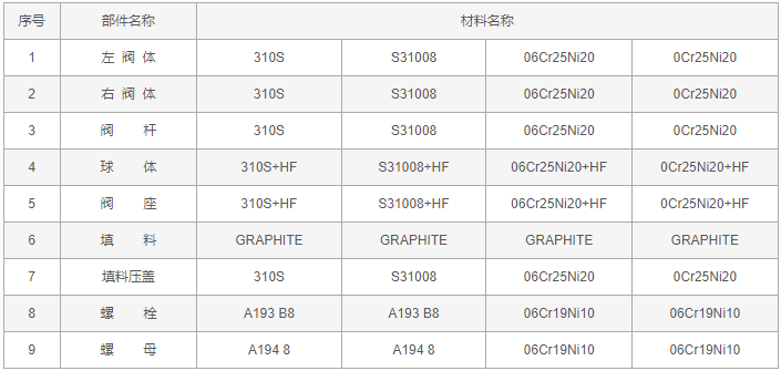 310S不銹鋼球閥零件材料: