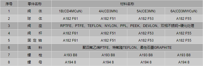 雙相鋼美標(biāo)球閥零件材料: