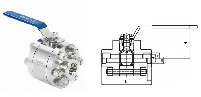 高壓螺紋球閥外形結構圖: