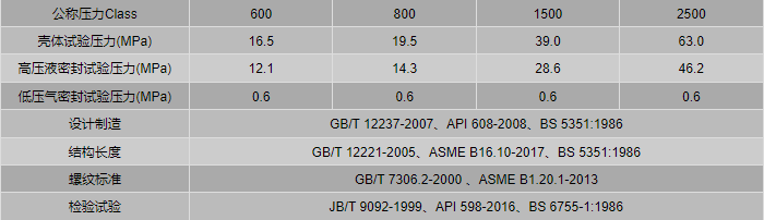 高壓螺紋球閥外形尺寸表:
