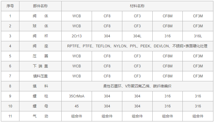 氣動(dòng)對(duì)夾V型球閥零件材料: