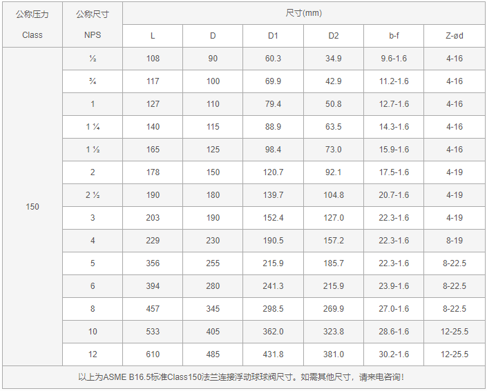 美標(biāo)法蘭球閥連接尺寸表:
