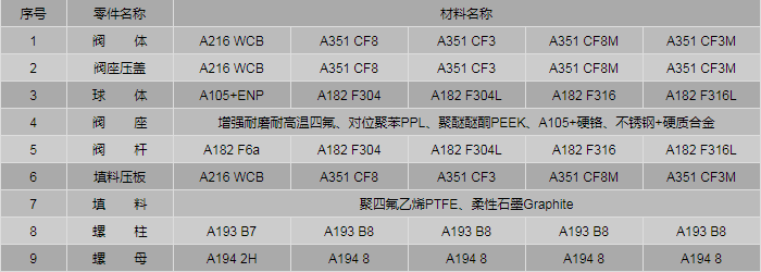 一體式美標(biāo)球閥由閥體、閥蓋、閥座、閥桿、和驅(qū)動裝置等組成。其球閥設(shè)置于閥座內(nèi),閥座位于球體內(nèi)部,閥體一端開口,閥蓋固定連接于閥體的開口端上,且閥蓋朝向閥座的一端端部固定連接閥座,閥桿中部外周設(shè)有填料密封組件。該閥有軟密封和金屬硬密封兩種,金屬密封的填料密封組件包括由上至下依次設(shè)置的壓板、彈簧、填料壓蓋、填料函和填料座圈,壓板固連閥體,填料函位于閥桿、閥體與填料壓蓋之間,填料座圈周部與閥體之間設(shè)置有四合環(huán)。