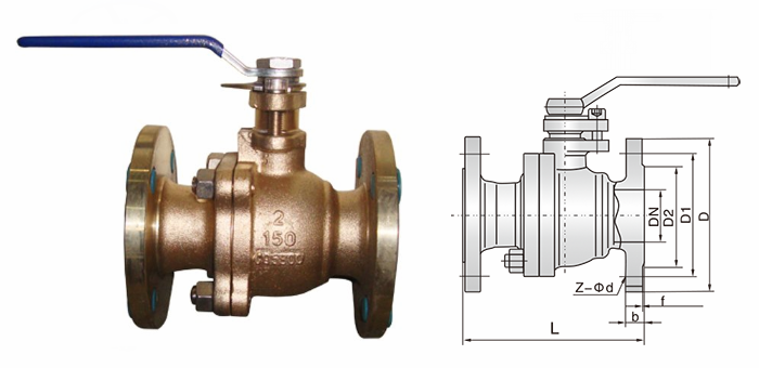 青銅法蘭球閥外形結(jié)構(gòu)圖: