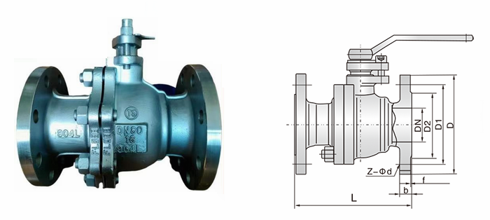 904L法蘭球閥外形結(jié)構(gòu)圖: