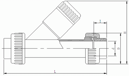 Y型塑料過濾器外形結(jié)構(gòu)圖: