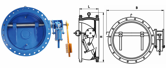 蝶形緩閉逆止閥外形結(jié)構(gòu)圖: