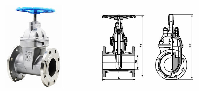 不銹鋼軟密封閘閥外形結(jié)構(gòu)圖:
