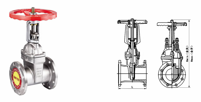 不銹鋼明桿軟密封閘閥外形結(jié)構(gòu)圖:
